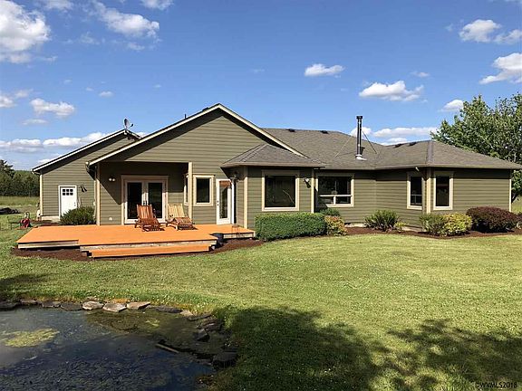 Peace and tranquility await in this 3 bed, 2.5 bath home with office. Oak floors through out main house. Carpeted bedrooms. Master with en suite & walk in closet. Garage extra deep for boat. New paint & heat pump system. 2+ acres Ponderosa Pine trees planted for harvest. Fish Pond. Pad & utilities in place for outbuilding/shop.
