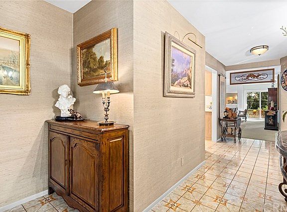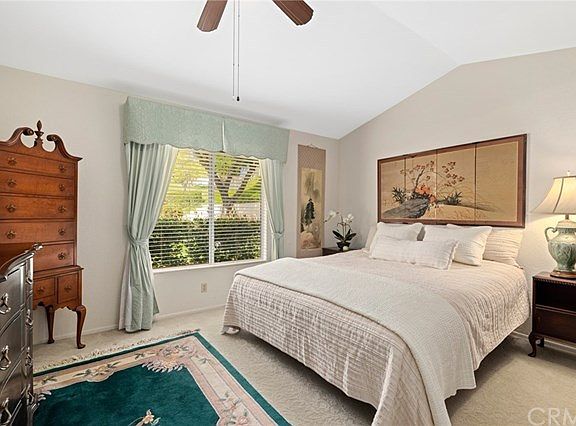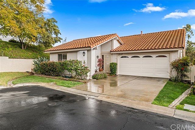 Elegant single story corner lot home on a cul-de-sac located in Mission Viejo's desirable active 55+ guard gated community of Casta Del Sol. This popular Rosa model w/ scraped ceilings offers 2 bedrooms, 2 baths w/ den that can easily be converted into a 3rd bedroom. The location is private, w/ a wrap around patio & pergola opening to a slope w/ retaining wall that can be used for your own garden w/ grassy area & more room for relaxing outdoor living all while enjoying views of the hills, trees & park. Custom remodeled kitchen with granite counters, Bosch stainless steel stove, microwave & dishwasher, Whirlpool refrigerator, soft closing drawers, corner cabinetry w/ lazy susan make cooking fun. The sea grass wallpaper, vintage wall sconces & glass chandelier will make you think you reside in the Huntington Library where you too can showcase all your beautiful artwork & museum quality antiques. Continue to live in paradise w/all the amenities of a clubhouse, 2 pools, tennis court, bocce ball, fitness center, community gardens, numerous clubs & activities & full access to Lake Mission Viejo. Welcome to your HAPPY HOME.