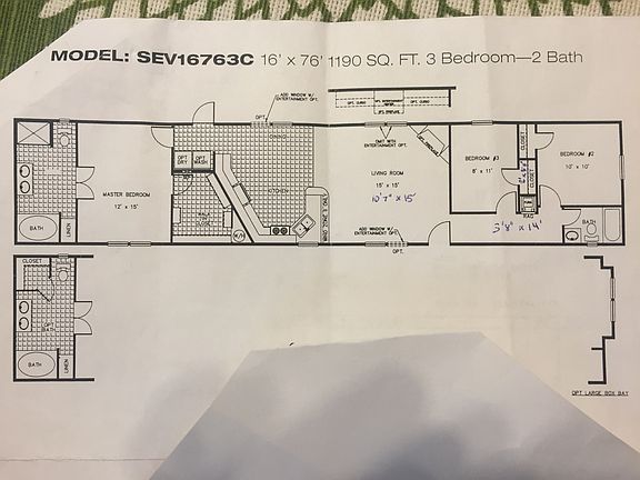 ***For Sale*** 2005 Clayton 16x80 Single-wide Mobile Home. 3 bedroom, 2 bath. Huge master bath with separate shower and garden tub, and very large walk in master closet with tons of storage space. Shingle roof with vinyl siding. New, upgraded carpet in 2012. Upgraded wood-look blinds throughout the house. Includes all kitchen appliances and large TV in living room. Bought new in 2004, single owner no pets/no smoking home. ***Must Be Moved***