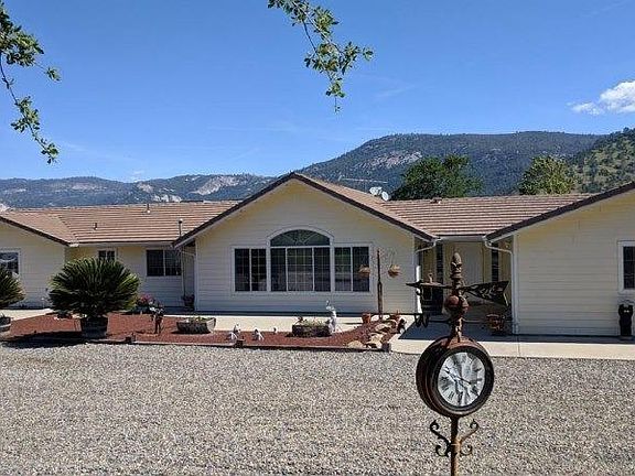 Gorgeous setting with this ranch style hm and the Sierras in the background plus manicured landscaping, partially paved driveway, fencing & more. In addition to the 3 bedrooms, there' an office and an extra bedroom added to the master to make a huge suite. (Wall could be put back to make another bedroom.) See attach original Floor plan. There's a huge great room with a wall of windows, vaulted ceiling and open to the large kitchen w/2 breakfast bars & a walk-in pantry. A bedroom/bath is at separate end of home. All interior walls, including the finished 591sf garage have been insultated + extra insulation in the attic. When drilled, the well was over 100 gpm! Water is plumbed throughout the property. There's large carport & hookups for 3 RV's in the center area! The sec system w/camera & recorder are included. Perimeter lighting & drainage all around house. Wired w/speakers for surround sound in LR, patio & M.Bath. 20' container shop w/220 power.