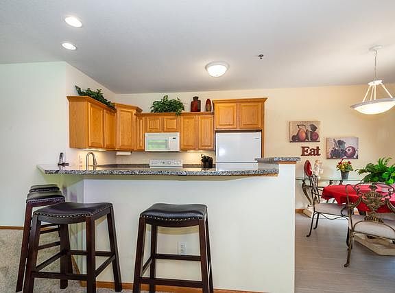 Stunning private 2 bedrooms 3 bath end unit condominium. Open floor plan, gas fireplace, and sliding doors from the living room and master bedroom to a private patio with a peaceful view. It also features a newly finished basement (piped for a refrigerator and a sink) with a full third bathroom a huge family room, a bonus room, and storage!