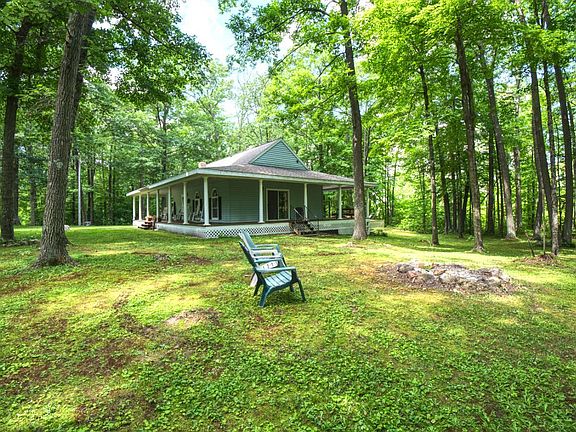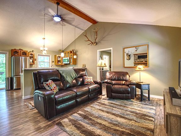 Turn-key & ready for you! Leave your problems behind & enjoy rest & relaxation at this private bungalow tucked in the trees. A short 1.5 hours from the Twin Cities awaits the perfect getaway situated on 5 wooded acres. Take in wild life, listen to the tranquil sound of owls, & lose track of time on the wrap around deck. Warm up next to the wood burning fireplace on cold days or enjoy the outdoor hot tub. This home has it all, for any season with proximity to many lakes, ATV/snowmobile trails, & hunting. Largon Lake boat launch is right down the street. Step into the open floor plan, complemented by vaulted ceilings & an eat-in kitchen. Perfect for entertaining company inside & out. You'll always find your way to the large porch, with access from each master bedroom, kitchen, & front entry. Each master features a private bath. One master boasts a large walk-in closet. Take full advantage of the full lower level waiting for your finishing touches. Peaceful living awaits - make it yours!