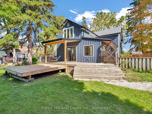 Affectionately called "The house at the top of the hill" - This is the perfect country home in the heart of Duntroon. The ideal property to live a rural lifestyle while only being a short drive down the hill into either Collingwood or Stayner. Surrounded by mature trees, this oversized, fully fenced in lot gives you tons of privacy to enjoy your backyard. So much room to garden, sit around the bonfire, walk back to the creek, or relax on the newly extended covered deck. The detached garage could be for auto enthusiasts, a woodworking shop, or an artist studio. The main house has a ton of classic country charm but is very livable and turnkey. The kitchen is an incredibly bright and inviting space with brand new oversized sliding doors to the deck and a huge island for gathering. An open dining space is perfect for a farm style table to enjoy meals with family and friends. Up a couple of steps you will wander by a upgraded full main floor bathroom and into your charming living space. This level also features a den or study that has new side by side washer & dryer with super functional laundry and utility storage space. Up the charming pine staircase you will fine your full second level with two generous bedrooms and oversized primary suite with vaulted ceiling and walk in closet full of storage. The second level has its own full bath with a soaker style tub. This home really has the turnkey functionality in addition to tons of character, charm, and interest which is a tough combination to find! You will love the house on the hill.