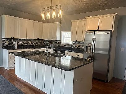 This beautifully appointed residence offers over 2,100 sq ft of refined living space, thoughtfully designed for both comfort and entertaining. The expansive kitchen and dining area features newer cabinetry, granite countertops, stainless-steel appliances, a kitchen island, and a pantry, creating a polished yet functional centerpiece of the home. Rich wood flooring throughout adds warmth and timeless sophistication.