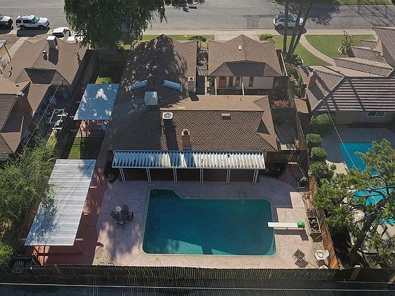 Beautiful Rivieria Westchester home. Right across from the bike path. Lovely courtyard entrance. French doors. Split wing. Fresh interior paint. Marble tile entry. Island kitchen. Updated microwave, oven & trash compactor. Lazy Susan. Plant shelves. Pull our pan drawers. Garden window. 2 skylights. Beautiful used brick fireplace with wood mantle in dining area. Updated ceiling fans throughout. Updated light fixtures. 2'' faux wood blinds. Built in china hutch with wine rack. Dramatic white rock fireplace in living room. Updated roof (2010), HVAC, master cool (2010) & central vac. Black bottom pool with updated pool equipment (2016). Updated wood look vinyl plank flooring. Remodeled guest bath with updated cabinets and updated tile tub surround. Spacious master has 2 closets w/ mirrored doors. Master bath has 2 sinks. New hot water heater. Office or formal dining OR could be 5th bedroom. Gate to alley. Updated fencing. Large covered patio PLUS 2 new (2018) shade patios with electricity.