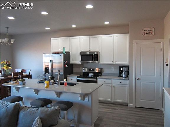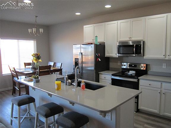 Family Relocation Has Caused This Move In Ready Home To Hit The Market*Welcome To The Sands Subdivision And This Wonderful Ranch Home*This Ranch Home Comes With 4 Bedrooms and 3 Baths*5 Piece Master Suite*Stainless Appliances*Eat In Kitchen Space*Large Kitchen Island*Lots Of Cabinet Space*Very Open Floor Plan*Basement Is Fully Finished With A Huge Family Area, That Will Be Great Entertaining Space, Family Movie Night Or Great Place For The Kids To Play*Original Owner*Spectacular View Of Pikes Peak*Sprinklers Front and Back*House Is In Great Shape*Tons Of Storage Space*Turn Key Ready*Pottery Barn Perfect*Perfectly Situated For Easy Travel To Anywhere In Colorado Springs*Did I Say Perfect View Of The Peak?*Great Home*Seller Willing To Negotiate 2/1 Buyer Interest Rate Buy Down*