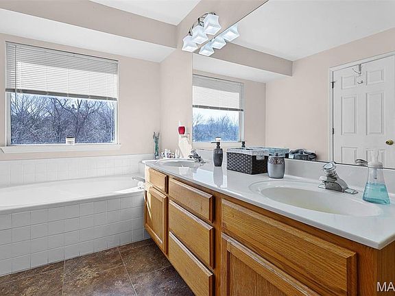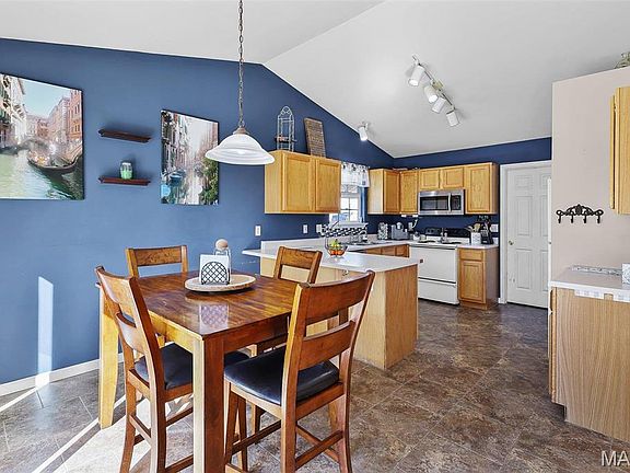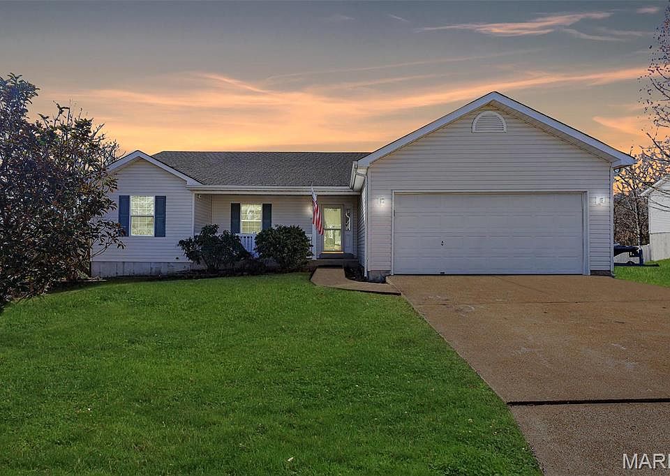 Welcome to your new home! Nestled on a quiet cul-de-sac in Woodhurst Estates, this beautifully maintained 3-bed, 2-bath ranch offers stunning wooded views and an expansive backyard. The open floor plan boasts vaulted ceilings, an abundance of natural light, and a seamless flow throughout. The spacious kitchen is a dream, featuring a large breakfast bar, custom cabinetry, a pantry, and an eat-in dining area with sliding glass doors leading to a deck—perfect for outdoor enjoyment. The primary suite provides a walk-in closet, dual sinks, and a separate tub and shower, while two additional bedrooms and a main-floor laundry add convenience. The partially finished walkout lower level includes a cozy family room, dedicated office space, recreation area, and plenty of storage. Additional highlights include a 2-car attached garage, an extended driveway for extra parking, and a charming front porch. This home offers the perfect blend of comfort and convenience!