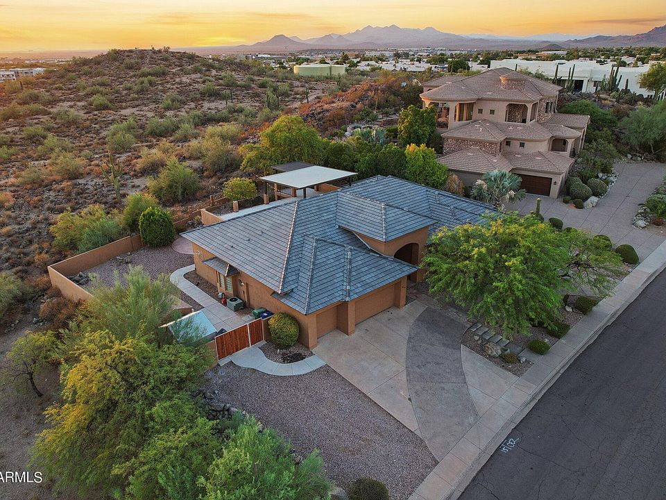 Amazing Custom Home in Mesa Desert Heights with NO HOA and a NEW roof! This Home sits on a BIG 1/3 acre lot with an RV gate and an over sized 3 car garage. This backyard is an entertainers dream with stunning views from the outside observation Deck, a great covered patio, Built-in BBQ & Bar top, a charming built in Fireplace with built in seating and the best part is this home is a corner lot with NO rear neighbors.