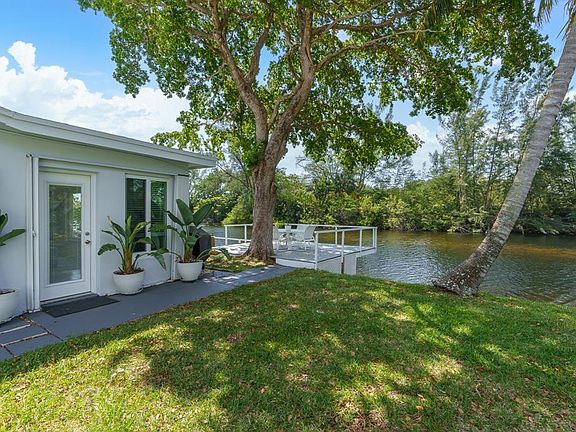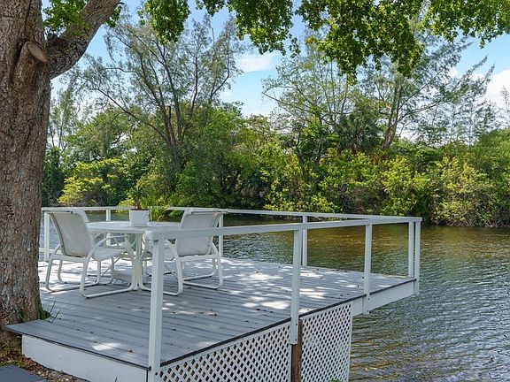 The home boasts a large waterfront deck overlooking the lake with lighted railing for evening pleasure. The property is adorned with tropical plants all around. Your own personal oasis!
