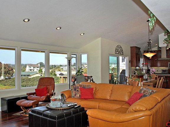 Outstanding location positioned for stunning views on the Arroyo Grande Mesa! This gorgeous 4 bedroom, 4 bath home offers panoramic views from numerous rooms as well as from two expansive view decks. Greatroom entry showcases vaulted ceilings, Brazilian Cherry hardwood flooring, fireplace with marble surround and stunning ocean and dune views. Kitchen features slab granite counter tops, Maple cabinetry with Cherry finish, stainless steel appliances and gorgeous views. Lower level living area features family room, kitchen, two bedroom, two bath, study and numerous hall closets for plenty of storage. Beautifully landscaped yard with flagstone front walkways, lawn, mature trees as well as fruit and citrus trees. Two expansive view decks to enjoy spectacular panoramic ocean and dune views!