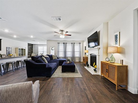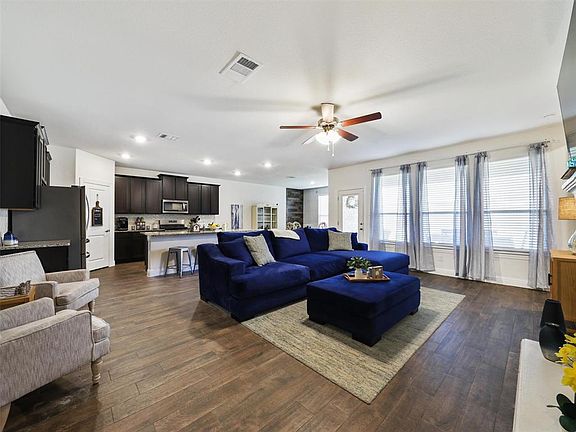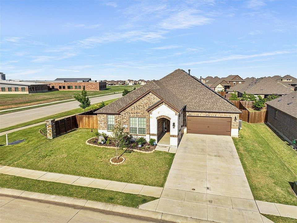 This DR Horton 2251 model is a rare find...with 4 beds 2 baths on a large corner lot within walking distance of Fuller Elementary in the acclaimed Aubrey ISD. This floorplan lives larger than it is. All secondary bedrooms are on the opposite side of the primary suite and feel nicely tucked away from the entryway. The family room is generously sized as well as the eat-in kitchen which will accommodate a large table and plenty of room for entertaining. The kids and furry friends will appreciate the large side yard and backyard. The owners have paid in full for solar panels which provide very low utility bills. If you are not familiar with Silverado... it is all about the outdoors. Miles of hike and bike trails and if you haven't visited the amenity center be sure to take a peek at the large pool and playground.