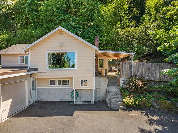 Gardener’s Paradise in the City! Nestled on a generous 0.44-acre greenbelt lot in Portland’s Powellhurst-Gilbert neighborhood, this Kelly Butte home offers versatile space and stunning views of Mt. Tabor and Rocky Butte. Located just four blocks from the MAX station, it’s both peaceful and convenient. Step into a warm, light-filled main floor featuring spacious living room with oak floors, classic wall paneling, and centerpiece fireplace. The well-equipped kitchen includes a gas cooktop, double ovens, dishwasher, island, and a cozy dining nook with large windows overlooking your private oasis. The two main floor bedrooms feature wood floors, while the updated bathroom offers a claw-foot tub. The lower level can be accessed by interior staircase or private exterior entrance. It features a second kitchen, living room with skylight, another updated full bath, and three additional rooms. These flexible spaces are ideal for a home office, storage, guest quarters, or potential rental income. Enjoy indoor-outdoor living with a covered front porch and a rear covered patio just off the kitchen, perfect for outdoor dining. The partially fenced backyard is brimming with mature plum, crabapple trees, grape arbor, blueberries, raspberries, garden beds ready for summer, and an outbuilding that provides extra storage. An oversized one-car garage includes a bonus storage room, and the wide driveway offers plenty of parking.