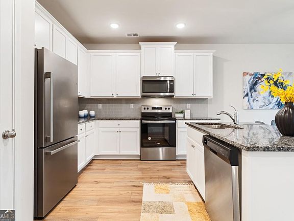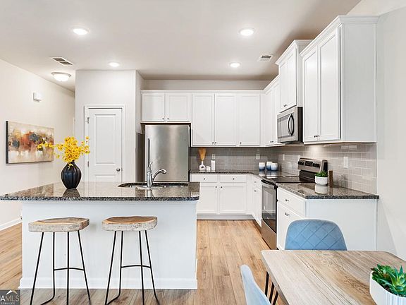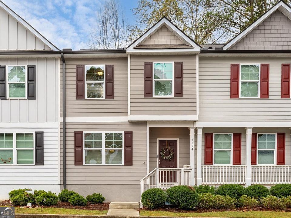 Enjoy Life with a View at 2824 Saratoga Circle! Overlooking the peaceful community lake, this premium townhome combines modern design, thoughtful layout, and like new condition in one exceptional package. Built in 2022, this home stands out with its rare lake view, oversized kitchen, and open concept living that's perfect for entertaining. Step through the welcoming foyer into a bright dining room that opens to a chef's kitchen featuring an expansive island, granite counters, stainless appliances, and upgraded 42 inch white cabinetry. The main level flows seamlessly with luxury vinyl plank flooring, oversized windows, and generous natural light throughout. Upstairs, a split bedroom layout offers privacy and function. The owner's suite impresses with a large walk in closet, double vanities and a spa inspired bath with separate soaking tub and shower, a perfect retreat after a long day. Two additional spacious secondary bedrooms and a full bath provide flexibility for guests, a home office, or family. Step outside and unwind with private backyard views of the lake, surrounded by professional landscaping and quiet surroundings. Tucked within a small, well kept community of modern craftsman style homes, this location offers easy access to I-285, I-20, 15 minute drive to the airport and downtown Atlanta plus shopping, parks, and restaurants just minutes away. Move in ready, beautifully maintained, and perfectly positioned with one of the best lots in this neighborhood.