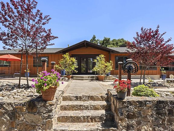 This beautiful home blends rustic charm with contemporary design to provide cozy, stylish living. From the exposed beam ceilings and custom window treatments in the public spaces to the granite center island and reeded glass style cabinets in the kitchen you will appreciate the thoughtful design. Functional details that enhance daily living include an attractive coffee bar, dedicated laundry room and double sinks in the hall bath. A fourth bedroom has easy exterior access so could serve as a home office. The generously sized parcel is anchored by mature trees but still offers room to park a boat, RV, or equipment while still having room to add a pool or ADU. Heating, AC, ductwork and tankless water heater were additions less than 10 years ago. Dishwasher was replaced in fall 2024.