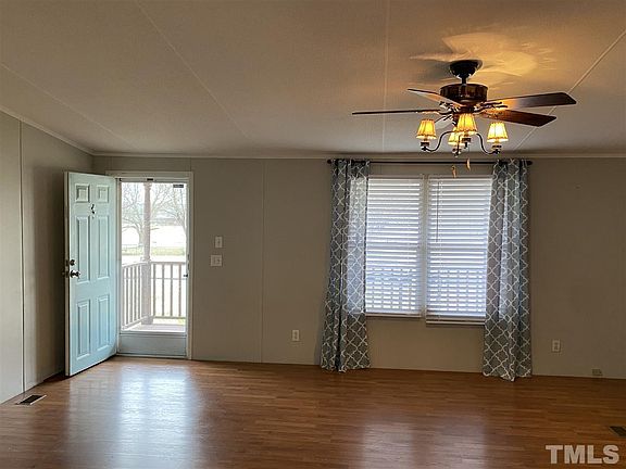Perfect country living 3 bedroom, 2 bath 1998 Doublewide on private 1.0 Acre lot. No subdivision, No HOAs. Covered rocking chair front porch. Screened porch overlooking big backyard. Large kitchen area opening into living space. Kitchen features dishwasher and refrigerator. Split bedroom design with spacious master bedroom with recent updated vanity and shower in master bath. Two covered car shelters. One wired storage bldg. Old barn. Convenient to I 95 and I 40 to Raleigh, Fayetteville, and Wilmington.