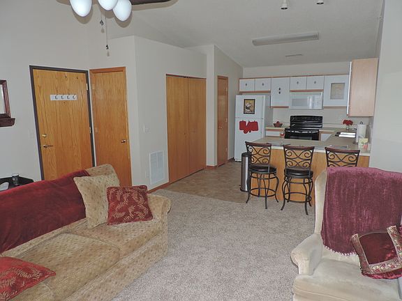 2 bedroom, 1 bathroom condominiums located on the southeast side of Iowa City. Available unit features a washer/dryer, all appliances, gas fireplace, vaulted ceilings and 1 car detached garage. Located just off HWY 6 near grocery stores and shopping. Additional off street parking available. *Pets are negotiable at this address with an additional fee* **Photos of a similar unit** Floor plans are approximate Utilities included: Garbage, lawn care, snow removal Rental Terms: Rent: $895, Application Fee: $30, Available 1/1/18 Contact us to schedule a showing.