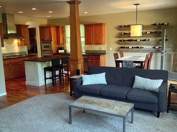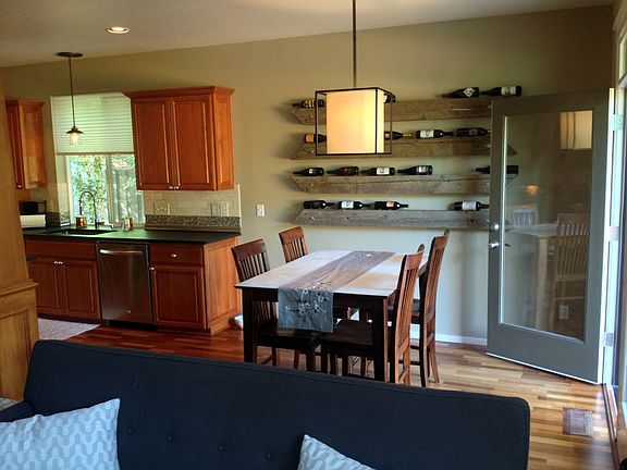 RARE oversized lot in desirable Arbor Crossing neighborhood. BACKS TO GREENSPACE. Master on main, includes a 2 sided fireplace, over looking private backyard. Open and sunny, east/west exposure. Vaulted ceilings. Arched doorways. Extensive use of stone and beautiful hardwood beams. Custom light fixtures throughout. Five bedrooms, could be three bedroom, den and media room. On Wilsonville school district bus route. Must see backyard!
