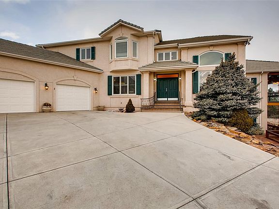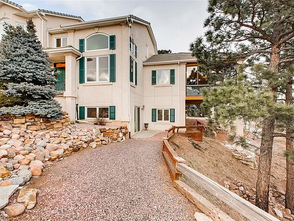 This beautiful Mountain Shadows custom home is in great condition and has had only one owner. It is move-in ready with freshly refinished hardwood floors and new carpet and paint. The Great room has a soaring 2 story wall of windows viewing the mature pine trees providing privacy and the front windows overlook Flying W and the hills of open space. The main floor master suite includes a fireplace and sitting area in addition to the luxurious bath. The main floor study has built-in shelves, cabinets, work desk and views. Spectacular views of the city lights await from the covered enclosed deck, which has an electric heat source to take off the chill. There is also a loft on the 2nd floor for a second study which could convert to a bedroom. The mostly finished walkout basement has a family room with fireplace (also could be used for an in-law suite). Kitchen is an entertainer's delight which opens onto deck. Main floor laundry w/utility sink. Wide doorways for wheelchair accessibility.