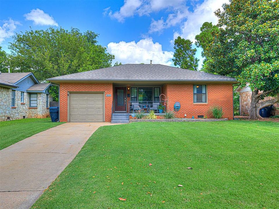 Welcome home to this charming 2-bed, 1-bath gem just a few streets from highly sought-after Nichols Hills! This adorable home is full of character and thoughtful updates throughout. The fully renovated kitchen features newer appliances, a double oven, updated cabinets, granite countertops, and a stylish backsplash. Beautiful flooring flows through the living, dining, and hallway, and the bathroom boasts an updated tiled shower and modern vanity. Both cozy bedrooms offer great storage with built-in closet space. Practical updates include a 3-year-old hot water tank, upgraded PVC plumbing (replaced from cast iron in 2012), and freshly replaced and painted soffits and gutters. The custom-fabricated front porch and side porch railings are inspired by the Lorraine Hotel, adding a unique, modern touch to the home’s lovely curb appeal. Outside, enjoy the spacious backyard with plenty of room for gardening, play, and relaxing evenings. Conveniently located near popular shopping, dining, and quick access to NW Expressway and Hefner Parkway for an easy commute. This move-in ready home is the perfect blend of charm, comfort, and location!