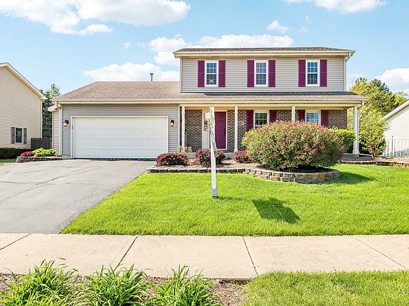 Beautifully maintained two-story home in sought-after Randall Ridge and top-rated District 301 featuring a welcoming front porch and sun-filled entry foyer flanked by a bright living room, an open-concept family room, breakfast area, and kitchen with espresso cabinets, abundant counter space, and stainless steel appliances-perfect for modern living and entertaining; a formal dining room adds elegance for special occasions while the breakfast room opens to a patio and fully fenced yard with mature landscaping and trees, creating a peaceful outdoor retreat; main floor also includes a convenient powder room; upstairs you'll find three spacious bedrooms and two full baths including a serene primary suite with a walk-in shower, dual sinks, and a large closet; the finished lower level offers flexible space for work, play, or guests, plus a dedicated laundry and storage/utility room-note, laundry could be relocated to the kitchen pantry space if desired; additional features include a large two-car garage, built-in storage shed, newer HVAC (2021), hot water heater (2021), brand new windows, microwave, stove, and dishwasher (2025), and roof (2005); all in a prime location just minutes to Randall Road shopping, dining, I-90, Rt 20, schools, parks, 35 minutes to O'Hare and about an hour to downtown Chicago!