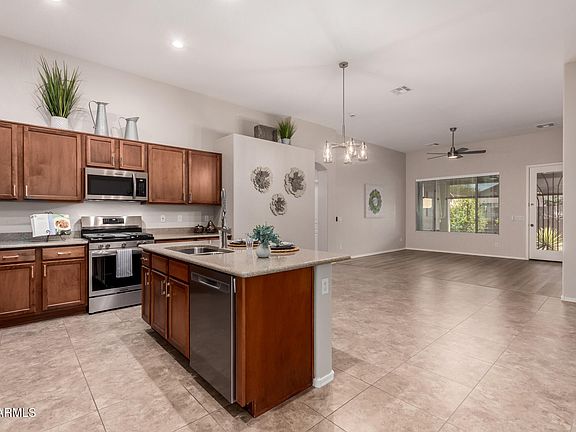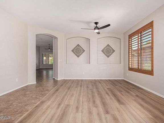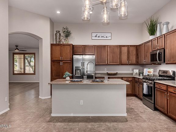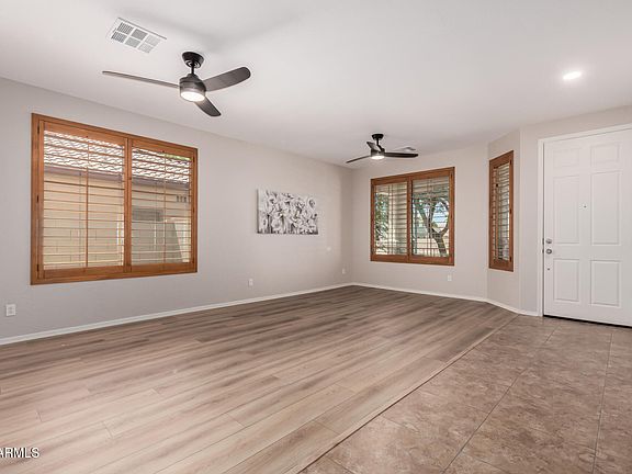 Located in the desirable Dobson Place community, this beautifully maintained home is truly MOVE-IN READY! Enjoy a functional split floorplan with 2 PRIMARY SUITES (each with walk-in closets, full en suite bathrooms + backyard/patio access) plus formal living & dining rooms and an open kitchen-to-family room layout. Impressive kitchen with ample storage, a center island with breakfast bar, and brand NEW stainless steel appliances, including a gas range & refrigerator. NEW interior paint, NEW carpet, and NEW luxury vinyl plank flooring throughout the main living areas. The charming, low-maintenance backyard features a covered patio with sun shades, paver walkway, and an above-ground spa, perfect for relaxing or entertaining!