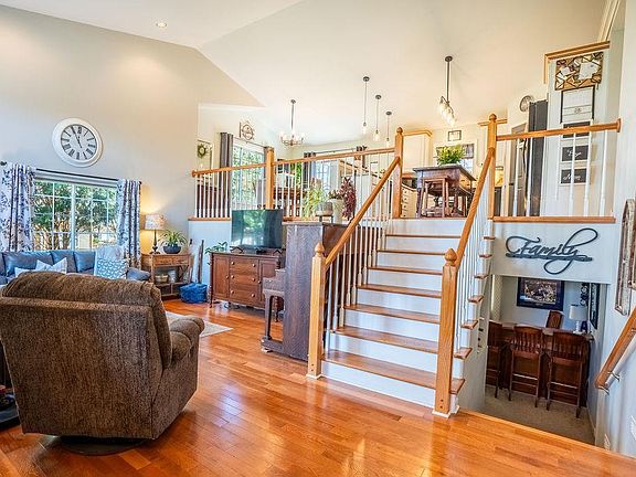 Step into this beautiful 4 bedroom home and experience the open feeling with vaulted ceiling and expansive windows allowing plenty of natural light in. Beautiful hardwood flooring in entry and living room. Three car garage with ample storage. Bright kitchen with pantry for extra storage. Patio door in dining area leads to back deck with pergola to enjoy morning coffee and evening cook-outs! Spacious primary suite with private bathroom and walk-in closet. Lower level features second family room with gas fireplace, two bedrooms and laundry room. Backyard provides privacy with a backdrop of trees and substantial boulders adding natural beauty significance Reach out for details and to schedule your showing of this great home!