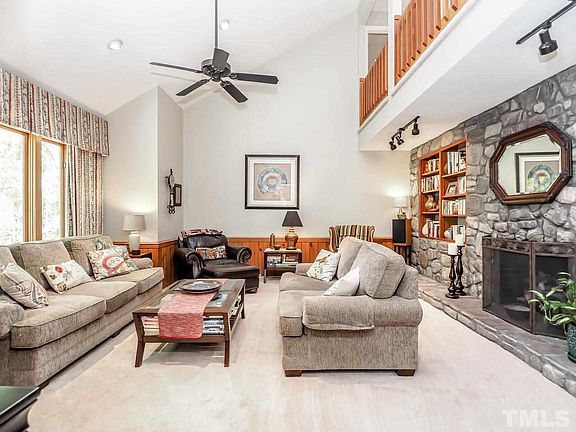 You will fall in love with this lovely 4 bed/2.5ba transitional home nestled on close to 1.5 acre wooded lot in prime N.Ral location.Special features include cedar siding,chefs kitchen,screened porch,and expansive stone work in vaulted living room.Sky lights throughout. Master on main w/ updated Whirlpool tub,sep shower and vanity area. Central vac on both levels,security system, and new built-in cabinets in garage.Bonus room connects to deck area via outside stairs.