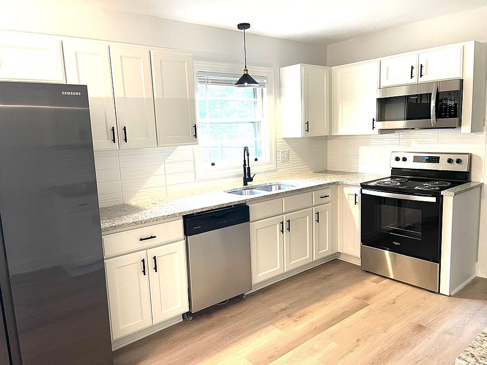 Complete remodel. New appliances, new kitchen cabinets, beautiful tile in kitchen, beautiful bathrooms with nice details through out. Excellent neighborhood. Large backyard with huge storage shed. Tenant responsible for all utilities. Two month security deposit plus month rent. Please attach proof of income.