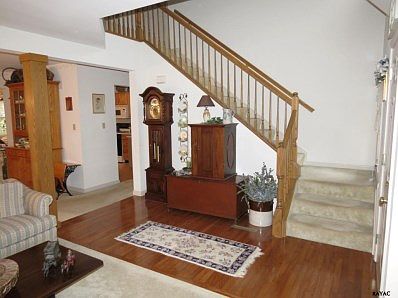 Immaculate 4BR 2.5BA 2sty Colonial*C-porch opens to 2sty foyer w/curved staircase*Formal LR & DR-neutral decor*Delightful large Kit w/cer tile fl, most appliances, brkfst bar & DA w/bow window & door to 22x20 deck w/pergola & steps to .38ac mature lot*FR w/gaslog FP & vaulted ceiling*1st fl MBR suite w/trayed ceiling*2car gar w/sink & cabs.*Beautiful landscaping.