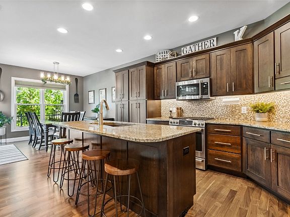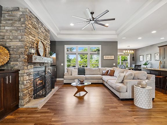 WOW, is what you will say when you walk in this ranch home located in the Wildflower Subdivision!! Open floor plan with hardwood floors throughout the main level opening to a main floor great room with a floor to ceiling custom stone fireplace, open kitchen dining combo with an abundance of custom Cherry Cabinets and Granite counter tops! Large Primary Suite with a great double vanity and large walk in closet!! Primary walks out to the custom HUGE deck that is set up for a hot tub area and loads of entertaining area!! Also has custom lights! Lower level is fully finished with a large family room with a theater set up, billiards area, bar and 2 to 3 extra bedrooms. One could be a den/bedroom! And I may have forgotten to mention the "man" cave garage!! Set up with Heat and Air, full sound and much more!! Full fenced yard! This house is a must see!! Seller is providing a 13 month HWA Platinum Warranty!