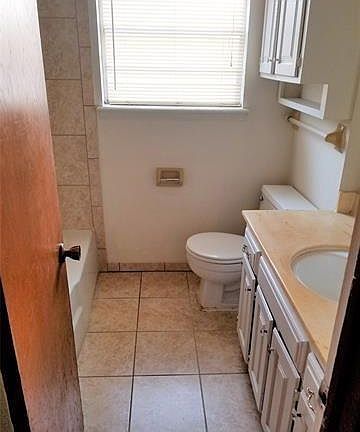 Duplex-Living room tiled, floating island in kitchen, dining combo, inside utility room, 1/2 bath in master, bedrooms have new carpet and walk in closets, fenced yard.