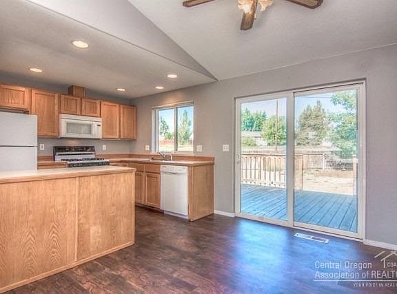Come fall in love with this easy to access, Southwest Redmond home. The centrally located kitchen and vaulted ceilings in the living and dining area open up to an expansive deck for entertaining. Clean colors, new flooring and an open floor plan provide a relaxing space. You'll find plenty of room for an RV or off street parking. Pre-inspection and a Home Warranty make this home a worry free solution.