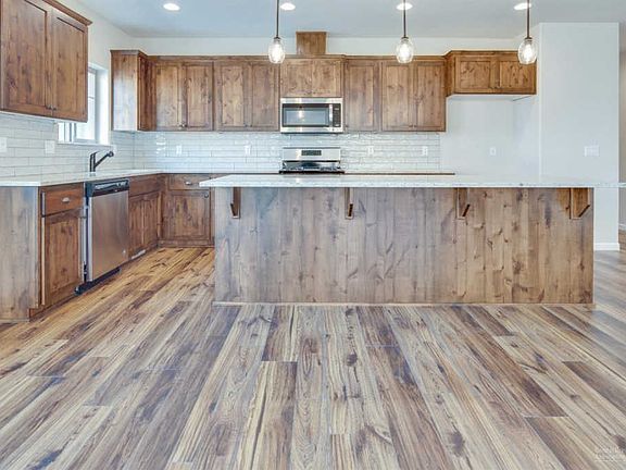Move in Ready! Affordable luxury built by Dunlap Fine Homes on the Bend side of Redmond. Spacious living both inside & out, w/plenty of room for entertaining. Vaulted Great Room plan w/open Kitchen & massive central island. Tons of cabinetry & prep space on the slab Quartz counters. Neat & tidy full height tiled back splash, SS appliances & farm sink. Living space offers a cozy corner Gas burning fireplace w/stylish accents & room for gathering. Desirable Master separation, walk in closet, step in shower & dual vanities. 2 additional guest rooms off the entry, Laundry room w/storage & folding table too! Durable wood look laminate flooring, carpet in the bedrooms & luxury vinyl plank in baths, 2 white blinds. Gas forced air, A/C & a custom pergola over the back patio for yr round comfort. Triple car garage, gated RV parking, fully fenced, landscaped w/auto sprinklers. There's still space in the back yard for a tiny home, ADU, workshop or? Call a R