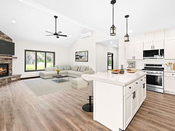 New construction with shared ownership in Pokegama lake lot. This 4 br/4ba slab on grade home is located on tarred dead end cul de sac close to new school, golf course, hospital and Grand Rapids amenities. This farmhouse style home has vaulted ceilings, primary en suite, in-floor heat, timber frame patio, large stone fireplace and oversized 3 stall heated garage and more. Lake lot has 165' floe floating dock to go on sunset cruises or fish crappies off the dock. Please view virtual tour to capture all this property has to offer.