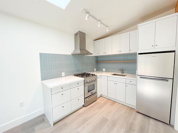 Brand new studio apartment with modern amenities including full kitchen with white European style cabinetry, gas burner stove, stainless exhaust hood, stainless steel refrigerator, tile backsplash, luxury vinyl tile flooring, in-unit washer and dryer, and tile surround bathroom. The ADU has a separate entrance and is conveniently located near parks, public transportation, 580 Freeway, 13 Highway, Dimond, Laurel, and Fruitvale districts where youall find abundance of shopping and dining options. Please inquire for a tour today.