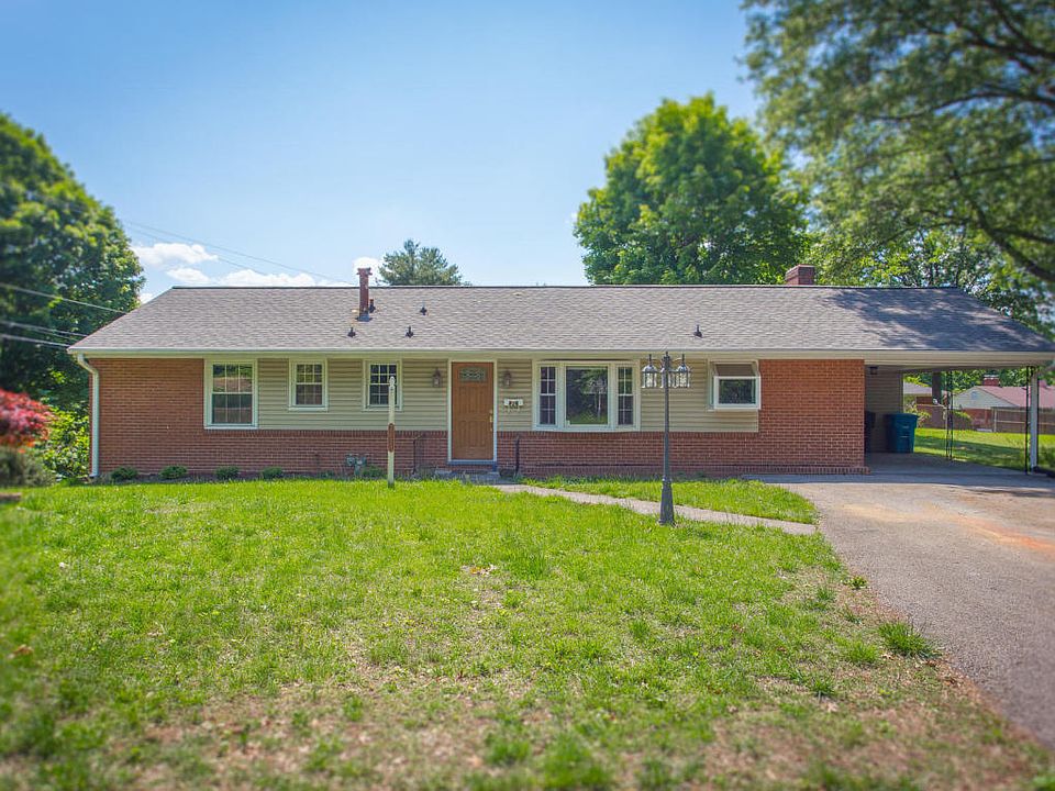 Very nice ranch in Grandin Court. Newer roof and insulated replacement windows. Updated kitchen with granite & stainless appliances. All main level hardwoods, formal living room with fireplace opening to trex decking and formal dining room. 4 main level bedrooms & 2 full baths Lower level play room extra bedroom or office, utility bath and mechanical area. Trane gas forced air furnace, gas hot water heater, central air, nice storage building. Double paved driveway to oversized carport with storage room. Security system as-is. House freshly painted throughout inside.