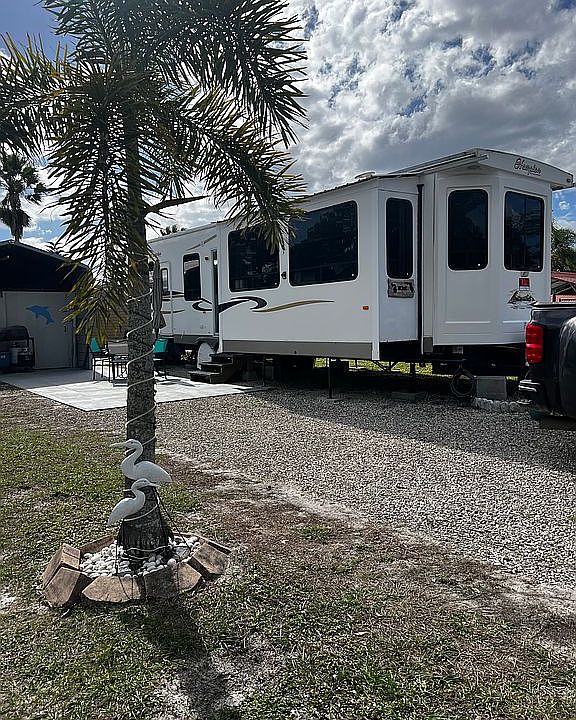 NEW LOWER PRICE $24,500. IMMEDIATE OCCUPANCY Lot #44, Bonnet Lake Campground, 2825 State Road 17S, Avon Park, Florida . Nice corner lot on quiet street, 2012 Hampton 40’ destination trailer with 4 slides(slides covered with metal roofs),1 bedroom (Queen bed), 1 bath with shower, new hot water heater, new refrigerator, 24” stove/ oven, microwave, electric fireplace, central vacuum, stacked washer and dryer, furnace & air conditioner, partially furnished including 2 TVs, new thermal curtains and rods, On-the-go water softener system, 12’ x 16’ carport/shed with loft, block floor and electricity. Priced at $29,500 obo. Call 810-922-9028 for more info.