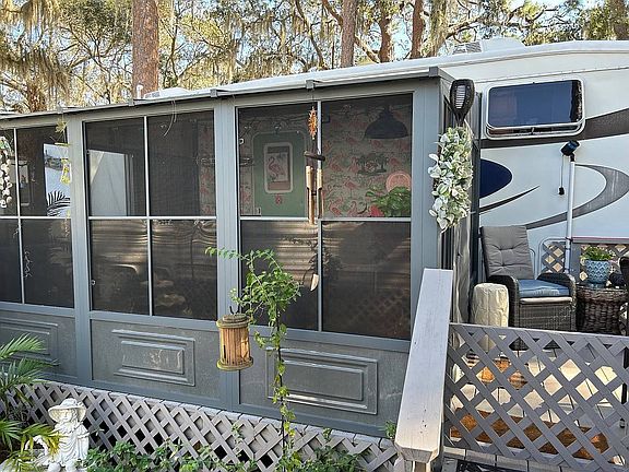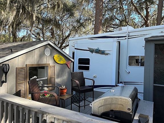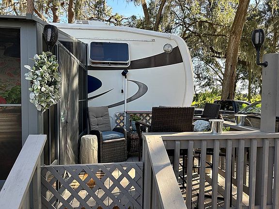 1BR 1BA 5th wheel in a 55 plus park 450 sq ft partially furnished. Located in a great park on Lake Bonnet. The park has a pool, clubhouse, tennis court, shuffleboard and boat ramp. The home is beautifully maintained with 2 sheds and a nice deck. One shed is beautifully finished, insulated and air conditioned. Fenced yard area. SB3824