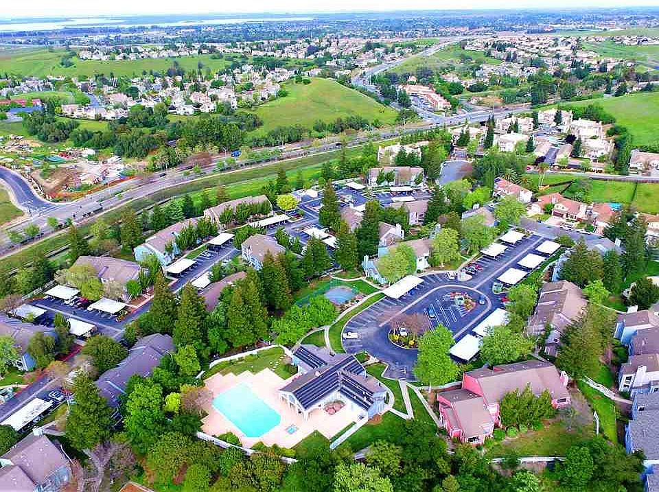 MOVE IN READY END UNIT - NEW PAINT & FLOORING! Open floor plan w/vaulted ceiling at family room - Kitchen & dining area with Laminate wood flooring - Full bath with tub/shower combo - Ceiling fans in all rooms - Balcony w/storage closet - Indoor Laundry (Refrigerator, Microwave, Washer & Dryer Included) - Close to Community Pool and Playground