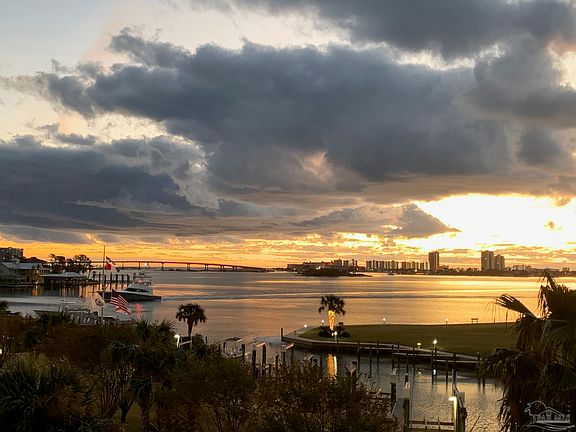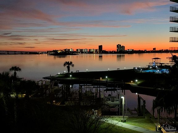 Stunning water views! Exclusive waterfront living located on 7-acres with gated entrance, lush landscape sweeping the entire property in the heart of Orange Beach. Overlooking Terry Cove and the Gulf of Mexico, this 3-BR 3-bath unit has a separate room for office, bar, or additional sleeping area. Incredible sunsets from expansive 30 ft balcony with built in stainless gas grill and remote outdoor ceiling fans. Spacious layout with high ceilings, open floor plan (no pillars), large living area with remote gas fireplace. More than $50K in recent upgrades including electronically controlled blinds that extend across living/dining area patio for total privacy if desired. All three bedroom suites have new flooring and ensuite bathrooms. New stainless refrigerator with custom craft ice and newly installed high-capacity HVAC unit. Bayshore Towers hosts a new state-of-the-art marina, tennis/pickleball, fitness center and 2000 sq.ft reservable kitchen/bar community room suite, covered entry, 2 outdoor pools, 3 hot tubs (indoor & outdoor). All of this is within a beautifully landscaped, pet friendly, gated community with a grassy park area to walk your dog or have a picnic. The unit conveys furnished. Deeded prime location 13.5' X 30' boat slip with recently upgraded remote lift system & covered large garage space sold separately.