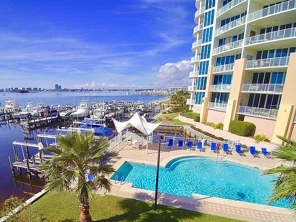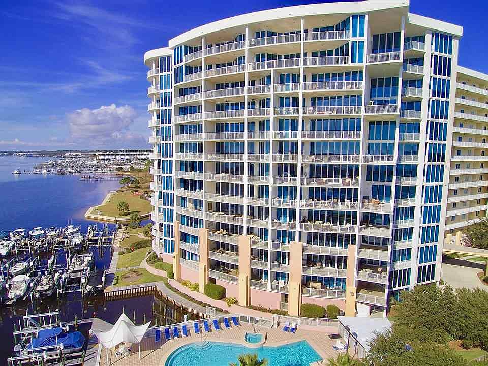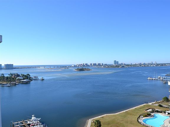 Stunning Waterfront Views from this large, unfurnished condominium located at Bayshore Towers and Marina in Orange Beach, AL! Lots of upgrades! New refrigerator, new air conditioner, upgraded carpet, tile, and beautiful (real) wood floors! This condo has stainless appliances and granite kitchen counter tops! This 3 bedroom, 3 bath condo also has a 4th room which can be used as an office, sewing room, extra bedroom or anything! Grill your fish on your own private balcony while you take in the views of the Bay, looking through The Pass Bridge, all the way to the Gulf of Mexico! You don't have to get on a Dolphin Boat to watch the dolphins play! This 9th floor condo looks over the Back Bay building also, allowing your view to be endless! Bayshore Towers has a large marina with boat slips for sale periodically. This complex has a Gated Entry with On-Site Management and all the bells and whistles: Pools, Hot Tubs, Tennis Courts, Fitness Room, Poker Room, Gazebo, Common Room with Bar, TV, Fireplace and Ice Maker ! Bayshore Towers is big dog friendly, and Owners may have up to 3 dogs! The complex has a large grassy area for picnics on the north side. This play ground area also grows various fruits and vegetables all for the Owners to share and enjoy. There is also a spice garden! Take a look at the photos attached! It's a lovely community/complex.