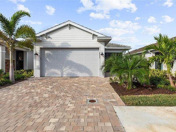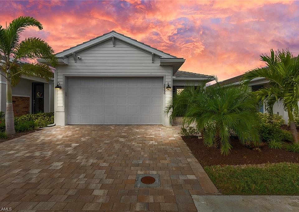 Welcome to your dream home in the sought-after Seasons at Bonita! Located a few short miles from I-75 and the beautiful beaches of Bonita, but also in a no-flood zone, keeping your home protected and insurance costs down. This stunning single-family residence by DR Horton features the popular Brighton open floor plan, offering bright and airy spaces with serene water views and unforgettable sunset views over the lake. Enjoy the amazing views from the extended lanai, whether winding down, relaxing in the evening watching the sunset from your hot tub, reading a book on the loungers, or having dinner al fresco! With 1,544 sqft., this home includes two spacious bedrooms, a versatile den, and two full bathrooms, all wrapped in modern elegance. Fantastic features include quartz countertops, 42" soft-close cabinetry, stainless steel appliances, and crown molding throughout, among other refined touches. Unique to this home as well is a screened in front porch and extended pavers, creating an outdoor porch if you would choose to sit out in the sunshine, watching and visiting neighbors as they go by. This gorgeous home is nestled in the vibrant Seasons at Bonita community, you'll enjoy low fees and abundant amenities that provide fun-filled options every day. Whether you're unwinding at the resort-style pool and cabana or enjoying a friendly game of pickleball, tennis or bocce ball, this community has something for everyone. Don't miss out on this gorgeous property where comfort meets luxury!