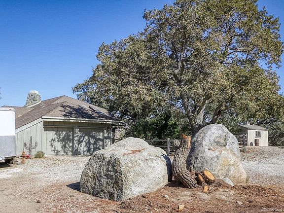 Looking for wonderful horse property, fantastic views, and lots of beautiful land? This 4.26 acre parcel has it all plus a lovely almost 2900 sq. ft home. This executive home is a one-of-a-kind hidden treasure not visible from the main road. Enjoy both the rock fireplace and the pellet stove in the winter and the open deck with built in seating nestled in the rocks and oaks in the summertime and you can enjoy the 360 degree views no matter what the season! For the horse lover there is a 2 stall shed-row barn with 3 turn out pastures, round pen, and a hay shed. Did we mention you can keep your energy costs down with your own (paid for) solar field? County records shows this to be a 2 bedroom home but upstairs there is a large bedroom suite loft with bathroom and closet at one end, a sitting area or office area in the middle and room for the bed at the far end . Way too much to mention so come see for yourself and fall in love!!!