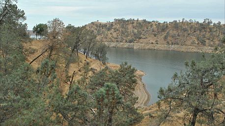 As the sun sets on the lake you can enjoy sitting on 1 of 2 balconies while the cool breeze moves up the cove. Open the custom window treatments to view the lake from the large windows in the family room, which opens to the kitchen and dining area. The kitchen is designed with concrete counter tops, track lighting and plenty of storage. Custom paint throughout, two bedrooms on the lower level with built-in cabinetry, guest bath and laundry room. Traveling to the upper level you will find the kitchen, family room and master suite. The slider door off of the dining room will take you to the lower balcony equipped with a HOT TUB and one more flight stairs you will find the BEST VIEWS on the top balcony. NEWER ROOF and HVAC are just a couple of things to show pride in ownership. Whale FOUNTAIN is included! There is also a path leading down to the lake with a seasonal beach like access. Just minutes from Table Mountain Casino
