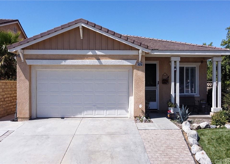 Welcome to this well-maintained, one story, upgraded home in the sought after Halsey Hills of Castaic. You'll love the open, spacious feeling with natural light as you enter the home. Perfect floor plan with separate living room, cozy family room with fireplace for those chilly nights or maybe entertaining holiday party's. Kitchen has plenty of cabinet space with breakfast area that opens to the family room. Lots of upgrades throughout the home have been added such as plantation shutters, beautiful tile floors, energy efficient dual pane windows, track lighting, tall, expanded kitchen cabinets, modern, whitewashed brick fireplace with hearth and a whole house fan to bring cool air in rapidly for those heated summer days. Master suite bathroom has been remodeled and door added for easy access to low maintenance backyard. Gas hookup in back for barbecues. This corner lot home has pride of ownership and is turnkey ready for you. Reasonable HOA of $99/month. Close to Castaic Lake, grocery store, restaurants and easy access to the 5 freeway. Come preview this wonderful home, you'll love it!