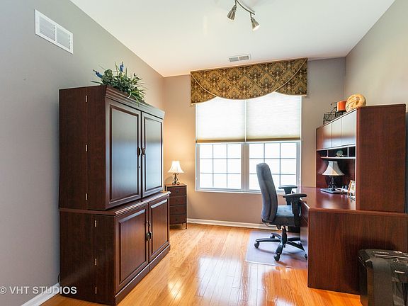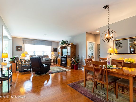 Upgraded Montrose with Extended Garage and Architectural Shingles! Hardwood flooring in ALL rooms! Kitchen opens to Living room with No Wall! Beautiful granite on island and countertops and granite extends as a backsplash. Lighting under cabinets reflects off granite and lighting on top of cabinets. 42" maple cabinets with knobs. Stainless appliances & newer Samsung Refrigerator. New gooseneck faucet and SS sink with high and low sinks. Custom verticals match paint color.Custom lighting throughout.HWH '18, Newer Kenmore LG washer/dryer 5 yr. Den has glass doors & transom.Mstr Bdrm has Bay window, Baths have ceramic tile floors. Montrose has tub and shower & dual sink. Front has side pavers and front door has new insert. Driveway faces south for quick melt in winter. Rear patio has extended pavers past concrete with wall and Malibu lights. Barbecue is built in and will stay. (Patio set can also stay.) Edgewater by Del Webb takes care of grass and snow maintenance. Gated community 24/7. Indoor and Outdoor pool and fitness center. Tennis and bocce courts. One person residing in home needs to be 55+.