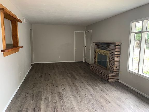 Single level three bedroom, one and 1/2 baths, living room with wood burning fireplace, dining room, kitchen, and sunroom. A total makeover, including new paint inside and out, new flooring in all living areas, new carpet in bedrooms. New cabinets in kitchen and bathrooms, new refrigerator, stove and dishwasher. New roof last year. Extra-large backyard with patio area. Big enough for a detached garage with an apartment above and still have room for a garden, lawn and play area. Close to Bushmaster Park, restaurants, and shops.