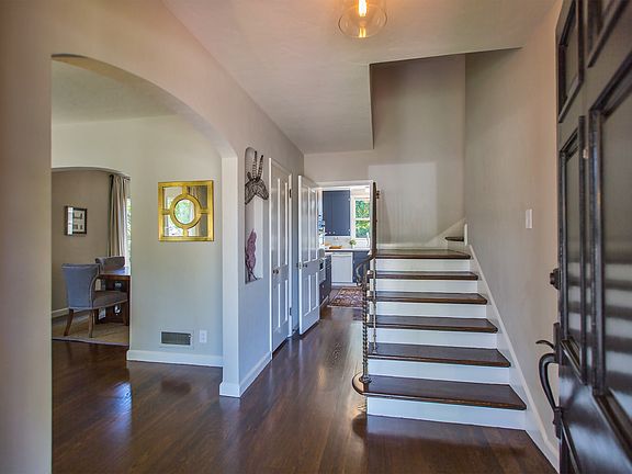 The foyer is centrally located within the floor plan surrounded by the formal living and dining rooms, kitchen, breakfast nook, and split-level staircases that lead to both the upstairs and downstairs levels. The recently refinished original hardwood floors and freshly painted walls add to the open feeling of this space. The living and dining rooms open up to each other for wonderful entertaining flow, marked with the vintage arched passthrough defining the two spaces. The living room boasts ample natural light from the east and south, the fireplace has been updated with a glass tile facade and surrounded by a built-in mantle and cabinet that stretches to the ceiling. The entire room has been rewired for HDMI, cable, and premium home-stereo equipment and includes a built in flat screen TV. The adjoining, light-filled dining room is conveniently adjacent to the kitchen and separated by a classic swing door, another signature of the architecture of its time. The sunny breakfast nook has two corner windows overlooking the backyard, as well as a door that opens out to the yard. The breakfast nook flows into the kitchen which includes an over-sink window with views of the yard; fresh, white Quartz countertops; a large French door stainless steel refrigerator with in-line water; a double oven and a gas stovetop. Beyond the kitchen is a staircase leading down to the ground level of the home where a newly permitted bedroom and bathroom have recently been added to the home. The bedroom has its own private access to the backyard as well as a full bathroom in the hallway. The new, permitted full bathroom is outfitted with beautiful amenities, including grey floor tiles and a shower surrounded in white subway tile, as well as a sink overlooking a small window for added ventilation. The private access to this room makes it ideal for guests or someone seeking a ground-level bedroom. The laundry area and garage are also accessible from this ground level, as well as crawl space access from the garage. The split-level staircase in the main foyer, boasting the original, beautiful wrought-iron railing, leads upstairs to the third level of the home, which features two large bedrooms and another full bathroom in between the two rooms. The first, east-facing bedroom is a light-filled space with a walk-in closet. The second room faces the west with views of the backyard and garden and includes a walk-in closet with built-in shelving. Both rooms are quite spacious with newly refinished hardwood floors, updated lighting, freshly painted walls and picture rails. The hallway between the bedrooms has a linen closet and leads to both the upper and lower levels as well as the bathroom. The bathroom features tile flooring, the original cast iron bathtub with a shower overhead surrounded by tile and a free-standing vanity. The master bedroom, and one more bedroom, are located on the upper level of the home. This level offers a variety of use opportunities depending on your needs. The master bedroom is equipped with three separate closets as well as access to attic storage, and it is also wired for premium technology hookups and features a serene pendant light over the bed. With windows on three sides, this room has light coming in from the west, south and east, creating a light filled space to enjoy. A cozy west-facing room adjacent to the master bedroom has views of the yard and is perfectly suited as a nursery, lounge or office, in it’s current configuration. Potential exists in the ability to convert this room into a master bathroom en suite, a large walk-in closet, or just open up the walls and create an even larger master bedroom.