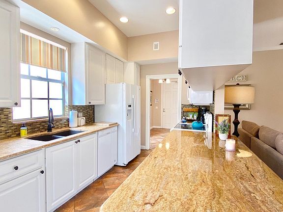 Step into this beautiful ''expanded'' Glenwood and you'll be impressed by the spacious layout where the living room flows to the dining, kitchen and then the wonderful Florida room/lanai which has a multitude of uses, morning coffee room/art studio/yoga retreat! This home has been lovingly cared for and boasts many upgrades. Custom tile flooring throughout, crown molding, granite counters (kitchen/bathrooms/laundry), built in entertainment center, updated a/c and appliances and more! There are brick pavers creating a courtyard on the side of the property which offers plenty of outdoor decorating options plus a grassy backyard, completely fenced in with a serene water view down the long lake leading towards Town Center.
