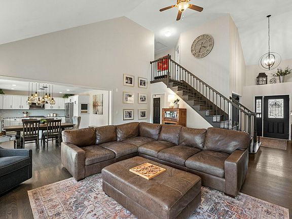 - Cathedral Ceiling(s), Stone Counters, Wet Bar, Walk-In Closet(s), Vaulted Ceiling(s), Open Floorplan, Recessed Lighting, Granite Counters, Kitchen Island, High Ceilings, Entrance Foyer, Eat-in Kitchen, Double Vanity, Crown Molding, Ceiling Fan(s)